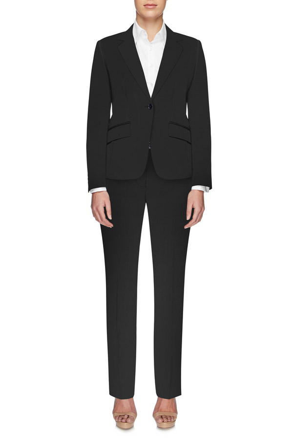 The Ladies Jacket is 1 button and tailored with side flap pocket and single chest welt.